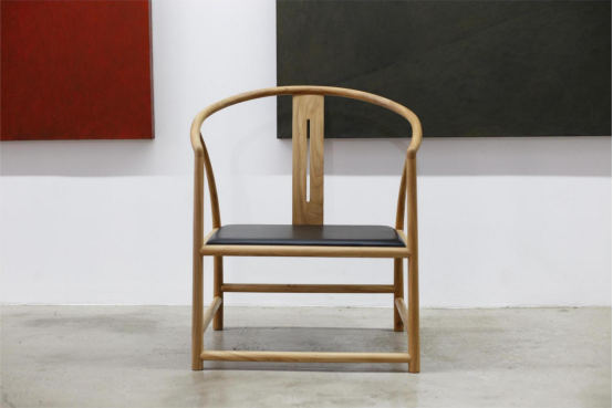 “觅闲圈椅”的收藏价值,源于其既深植传统、又突破传统的设计内核。据玄律家居工作人员介绍,作品以传统圈椅形制为灵感来源,其核心设计理念汲取自中国“天圆地方”哲学:靠背与扶手由一整条弧形木圈流畅衔接,自搭脑处优雅延伸至椅腿,线条宛如苍穹环抱大地,传递出“礼而不拘”的东方气韵;方形椅座与四足则暗合“地之稳重”,营造出“外圆内方”的视觉张力。工艺方面,作品完全运用传统榫卯结构,通过精巧的节点设计,以“显隐相生”的设计语言,将力学与美学完美融合,赋予了作品极高的艺术价值,充分展现了中国古典家具“以简驭繁”的造物智慧。更关键的是,梁众城并未止步于复刻——结合人体工程学原理,对椅子的椅背倾斜角度、扶手高度、座面深度进行了精心设计,确保使用者在保持端正坐姿时,肘部、背部、腰部能与圈椅完全贴合,从而实现持久的舒适体验。